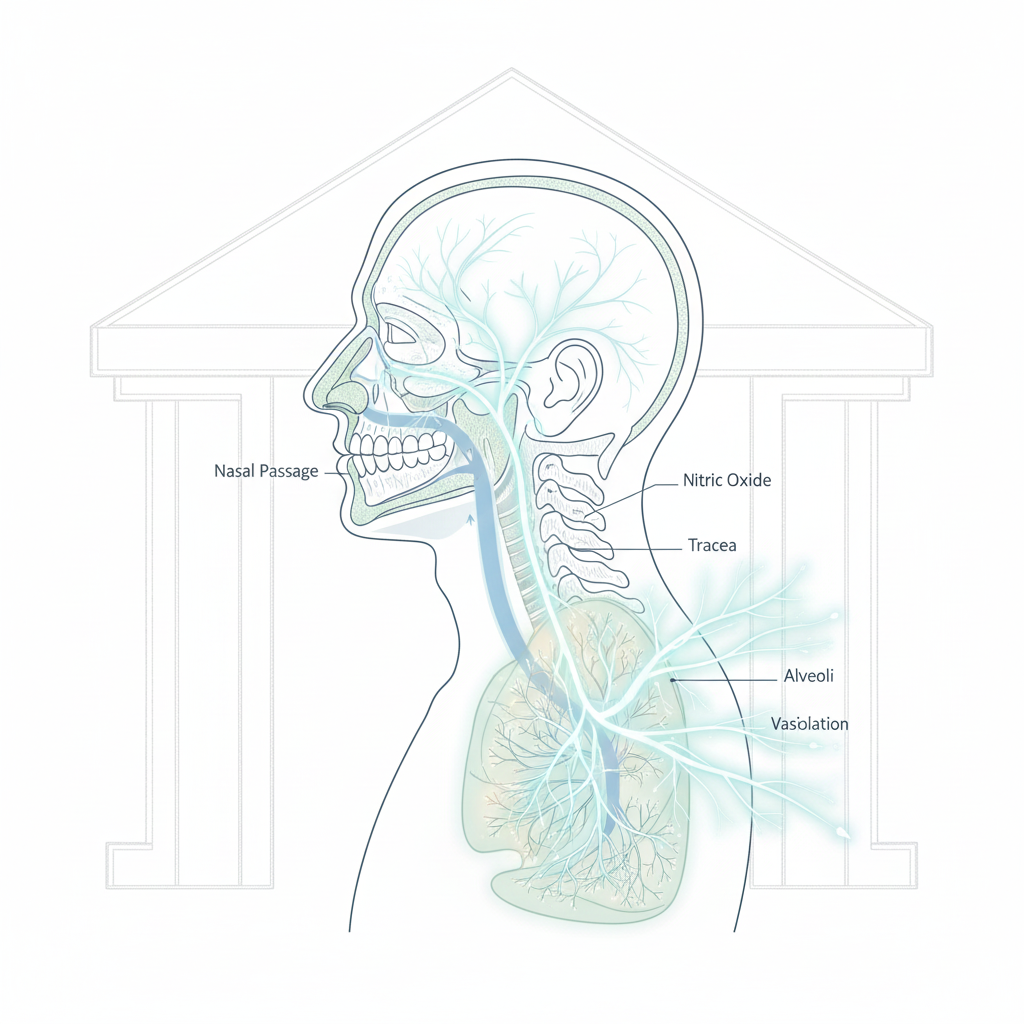 Nasal breathing is more than just filtering air—it is the engine of high-quality rest. It facilitates the natural release of Nitric Oxide (NO), a powerful molecule essential for dramatically improving oxygen exchange efficiency in your lungs.