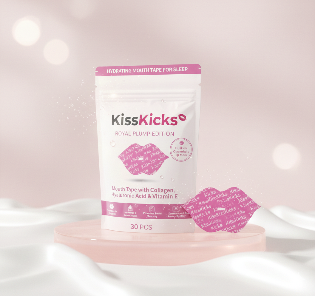 Tired of waking up with dry, chapped lips after attempting to mouth tape? The KissKicks Royal Plump Edition is your definitive wellness upgrade. This is not just a simple adhesive—it’s a non-pharmacological solution that delivers proven ingredients like Collagen for a more youthful appearance while encouraging effective nasal airflow all night long. Get a full month of dual transformation with 30 individual pieces in every pouch