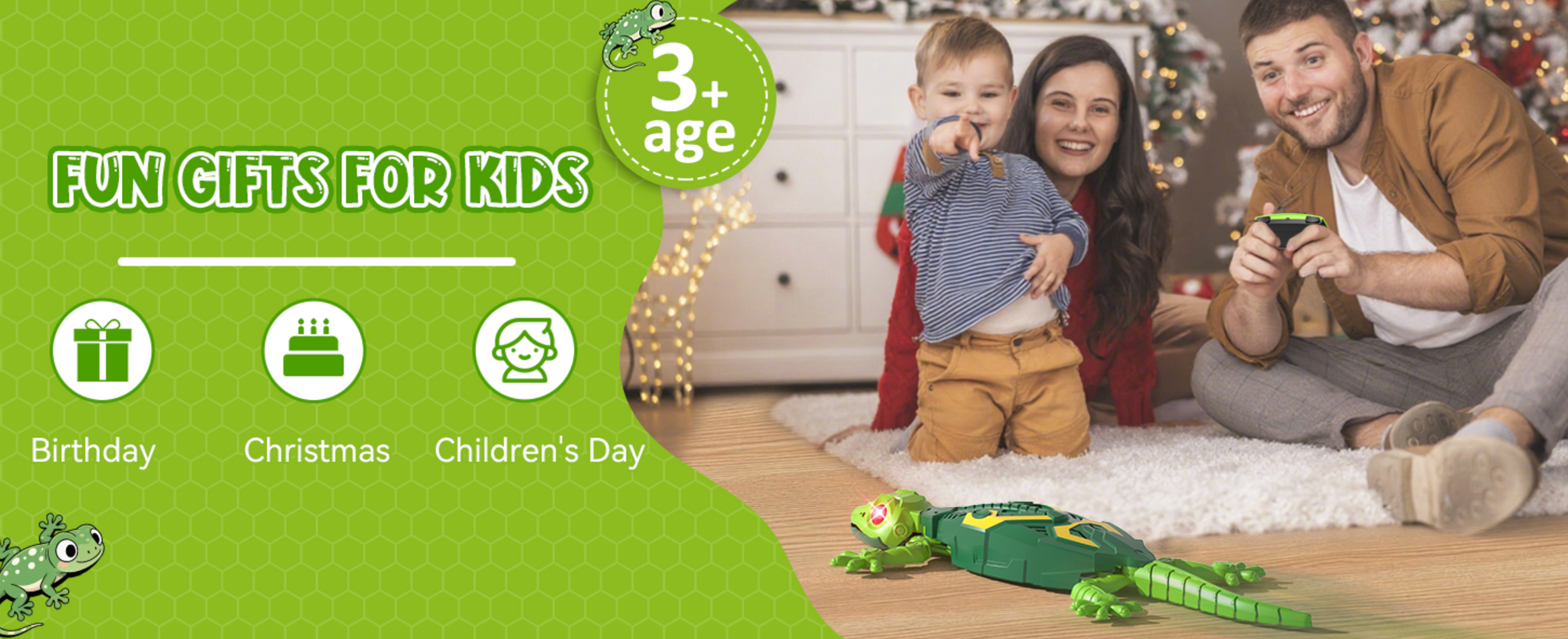 Forget the same old toys gathering dust by February. This robotic gecko is the conversation-starter that grandparents, aunts, and uncles dream of giving. Perfect for Christmas morning surprises, birthday party showstoppers, or Children's Day celebrations, it's suitable for ages 3 and up with adult supervision. Watch the whole family gather around as it crawls across your dining room wall—yes, even the adults will want a turn with the remote. It's not just a toy; it's the memory-maker that turns ordinary family time into unforgettable moments of wonder and laughter.